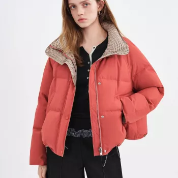 Double-Sided Reversible Standing Collar Down Coat for Women
