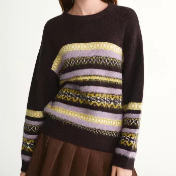 Women’s Autumn Winter Retro Knit Sweater with Folk Floral Pattern