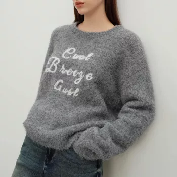 Color Block Letter Knit Drop Shoulder Sweater for Women – Winter 2025