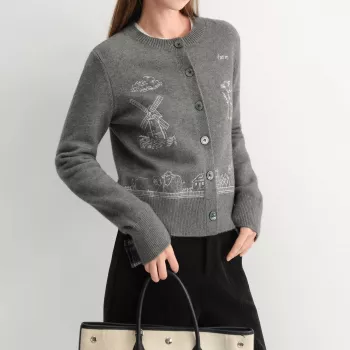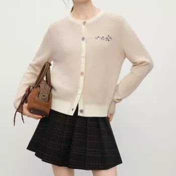 Women’s Contrast-Trim Embroidered Knit Cardigan