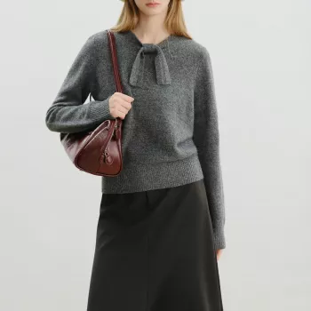 Petite French Vintage Bow Knit Sweater – Soft Autumn Winter Pullover