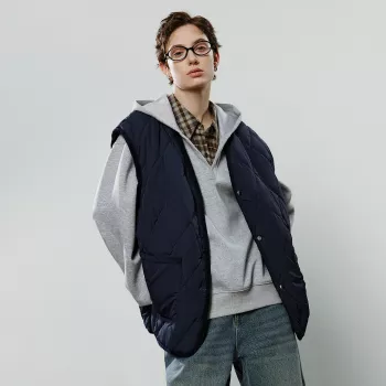 Women’s Winter Asymmetric Argyle Color-Block Cotton Vest Jacket