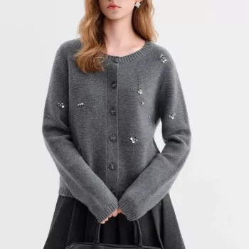 Vintage Beaded Wool Knit Cardigan Sweater for Women