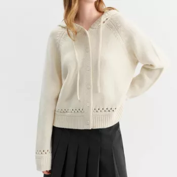 Retro Hooded Hollow Knit Lace Top for Women Winter