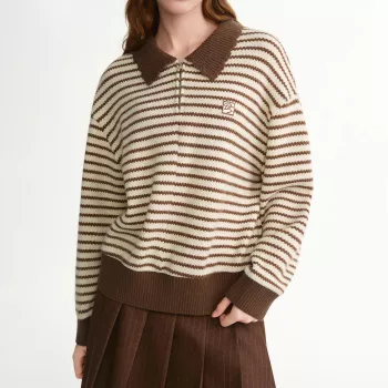 Turn-Down Collar Striped Knit Sweater – Retro Loose Winter Pullover