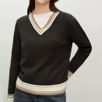 Petite V-Neck Color Block Knit Sweater – Relaxed Winter Office Top