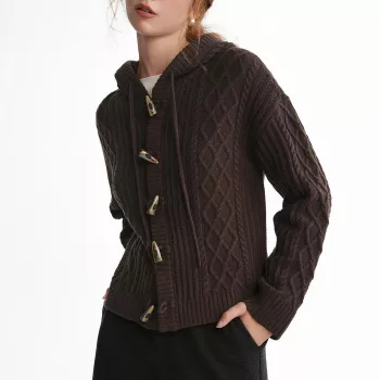 Plus-Size Women's Horn-Button Hooded Cardigan – Casual & Stylish Vibe