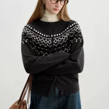 Vintage Fair Isle Knit Open Cardigan for Women – Autumn & Winter