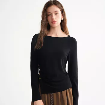 Women's Velvet Fleece Side Slit T-Shirt - Thermal Brush Slim Fit Long Sleeve Top