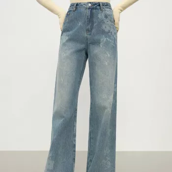 Women’s Wide Leg Loose Denim Pants – Mid & Low Waist Winter Jeans