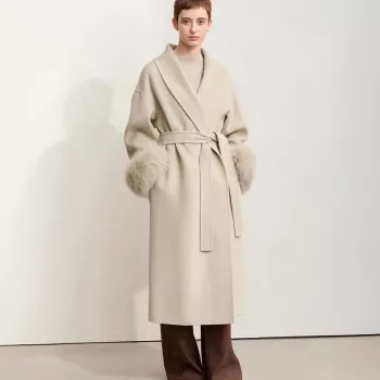 Women’s Long 100% Wool Coat with Removable Fox Fur Cuffs