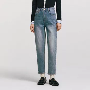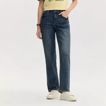 Washed Blue Retro Straight-Leg Diamond Split Jeans for Women