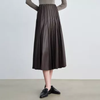 Women's Cherry Gloss PU Leather A-Line Pleated Midi Skirt