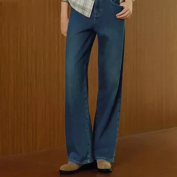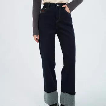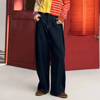 Women’s Retro Wide-Leg Straight Jeans with Patch Detail