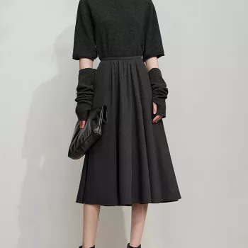 Plus Size High-Waisted Pleated A-Line Winter Skirt