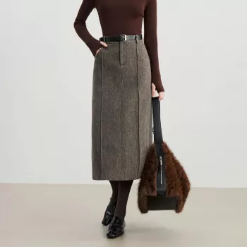 Retro Wool Blend Knee-Length Slit Skirt for Winter