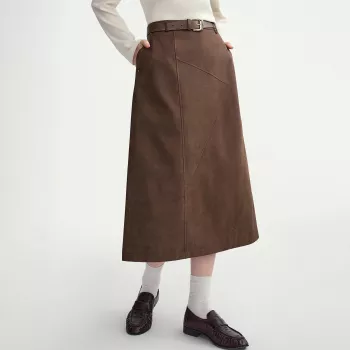 Autumn A-Line Drawstring Long Skirt with Strap Detail