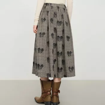Winter A-Line Mid-Calf Skirt with 3D Floral Embroidery