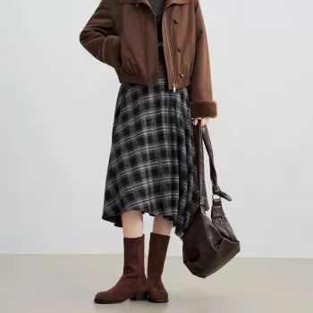 Women’s Retro Plaid High-Waist A-Line Midi Skirt