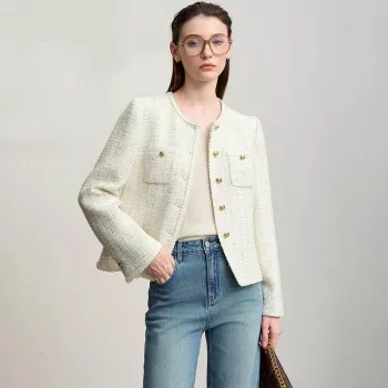 Elegant Straight Jacket for Women with O-Neck & Pocket Design