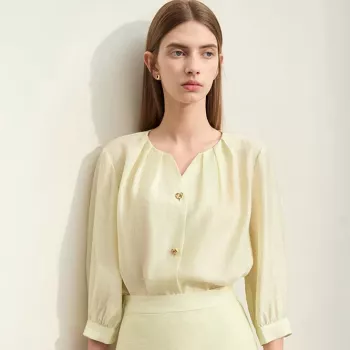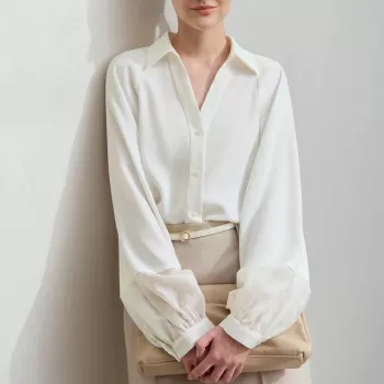 Chiffon V-Neck Loose Fit Button-Down Blouse for Women