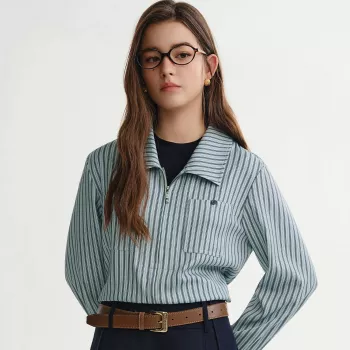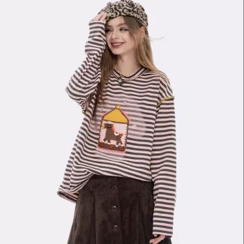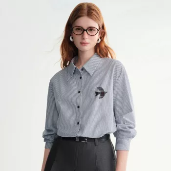 Women’s Artistic Checkered Applique Embroidery Stripe Shirt