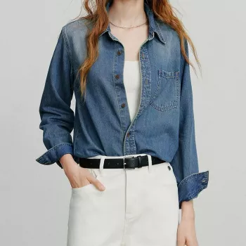 Asymmetric Washed Denim Shirt for Women