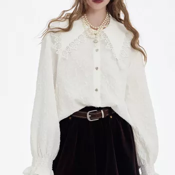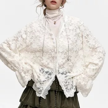 Y2K Stretch Lace Ruffled Cuff Lapel Collar Shirt for Women