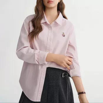 Plus Size Women's Denim Shirt with Bear Embroidery - Casual Winter Blouse