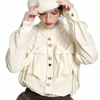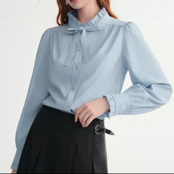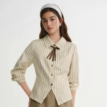 Velvet Bow Single-Breasted Slim Shirt for Women
