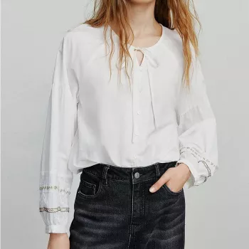 Plush Heart-Embroidered Button Blouse for Women