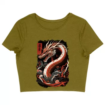 Chinese Dragon Women's Cropped T-Shirt - Illustration Crop Top - Cool Design Cropped Tee