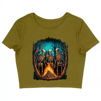 Skeleton Women's Cropped T-Shirt - Creepy Crop Top - Printed Cropped Tee
