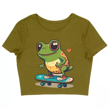 Kawaii Frog Women's Cropped T-Shirt - Skateboard Crop Top - Cute Cropped Tee