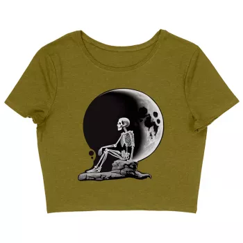Skeleton Design Women's Cropped T-Shirt - Moon Crop Top - Themed Cropped Tee