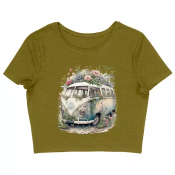 Bus Women's Cropped T-Shirt - Floral Design Crop Top - Graphic Cropped Tee