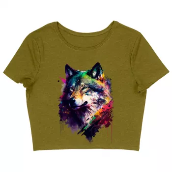 Colorful Wolf Women's Cropped T-Shirt - Cool Art Crop Top - Printed Cropped Tee