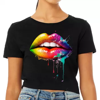 Colorful Lips Women's Cropped T-Shirt - Cool Crop Top - Trendy Cropped Tee