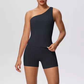 One-Shoulder Yoga Set with High-Waist Shorts – 2 Piece Workout Outfit