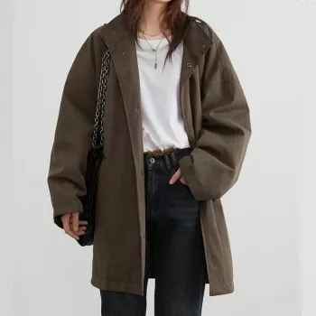 Women's Oversized Leather Trench Coat - Casual Stylish Korean Fashion