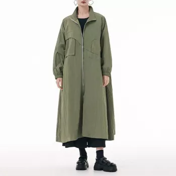 Women's Elegant A-Line Trench Coat - Autumn Windproof Pleated Overcoat with Belt