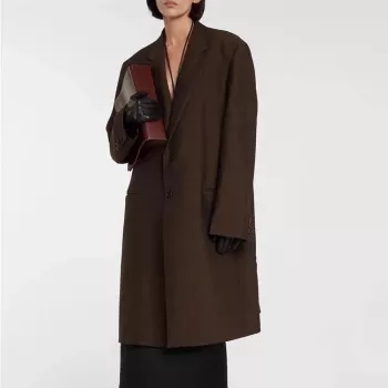 Women's Mid-length Double-breasted Wool Coat with Belt & Raglan Sleeves