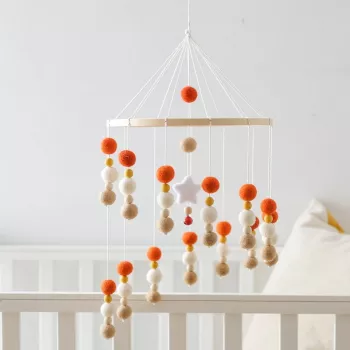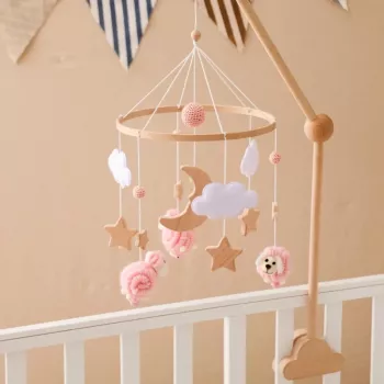 Wooden Baby Crib Mobile with Alpaca Felt Pendant and Music – Newborn Rattle Toy
