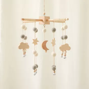 Wooden Baby Mobile Bed Bell with Moon & Clouds Rattle – Montessori Crib Toy