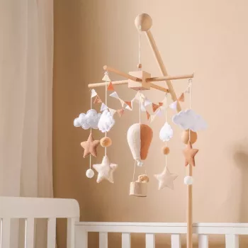 Baby Crib Mobile Wooden Bed Bell Rattle Toy with Soft Felt Hot Air Balloon Wind Chime Pendant
