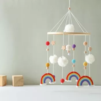 Wooden Baby Crib Mobile with Soft Felt Animals and Rainbow Hanging Toys