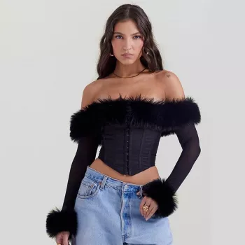 Elegant Square Collar Feather Sleeve Sexy Corset Top