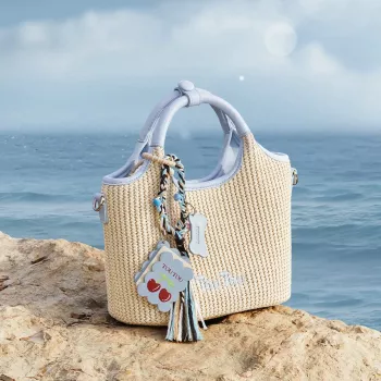 Stylish Straw Tote Bag with Strap - Seaside Beach Handbag & Messenger Bag