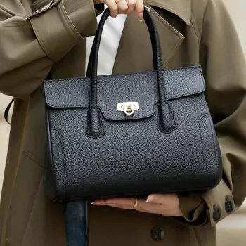 Large Black Shoulder Bag for Women – Designer Crossbody with Laptop & Phone Storage