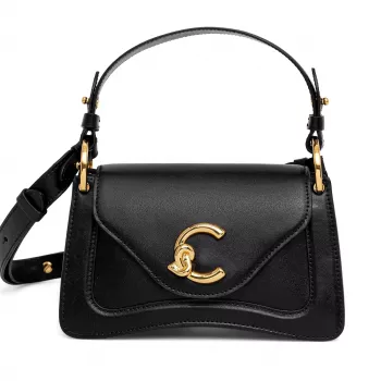 Coccinelle Women's Black Leather Satchel with Gold-Tone Clasp
